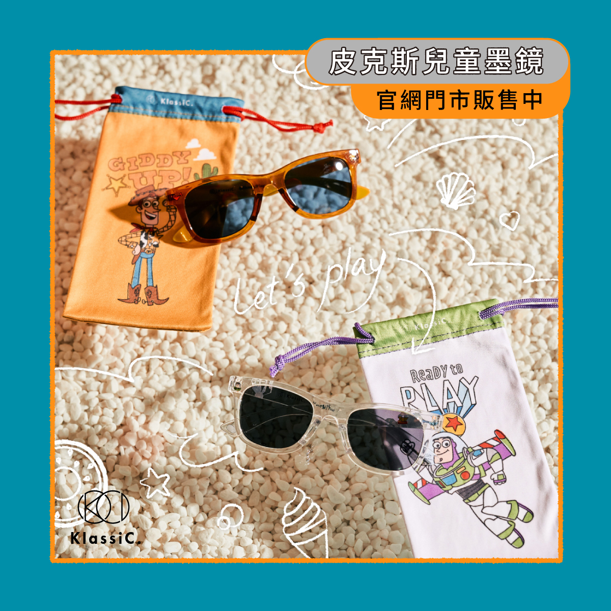使用巴斯、三眼怪、胡迪、熊抱哥四種皮克斯熱門角色,讓可愛又安全的墨鏡陪伴孩子們玩耍,超Q萌圖案與繽紛色彩挑起孩子們的開心情緒,夏季熱情竄動,生活可愛揮灑,邀請爸爸媽媽們一起感受這波夏季的快樂,讓孩子安全又頑皮的在地球上恣意跑跳!