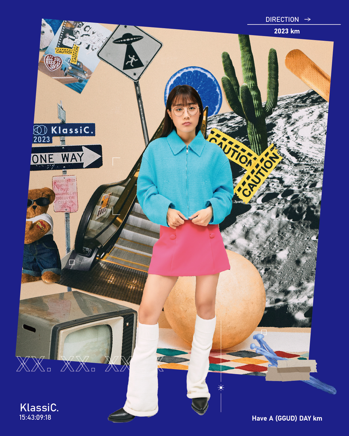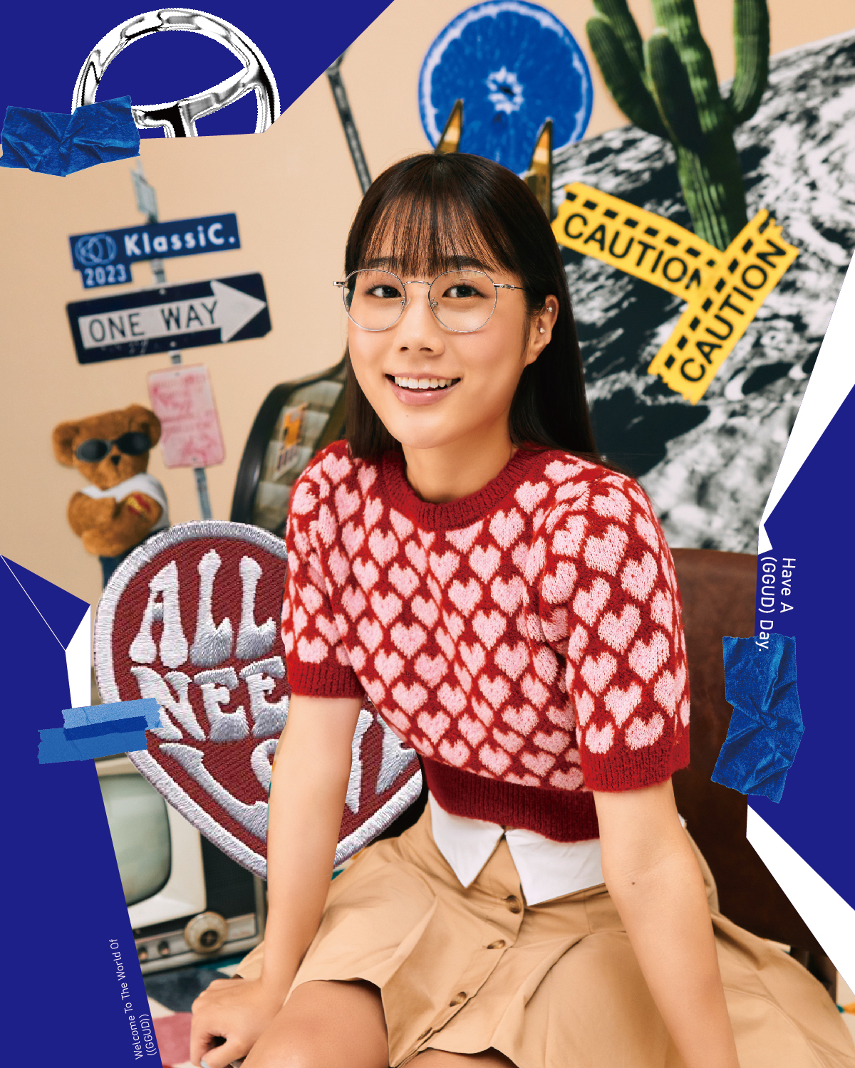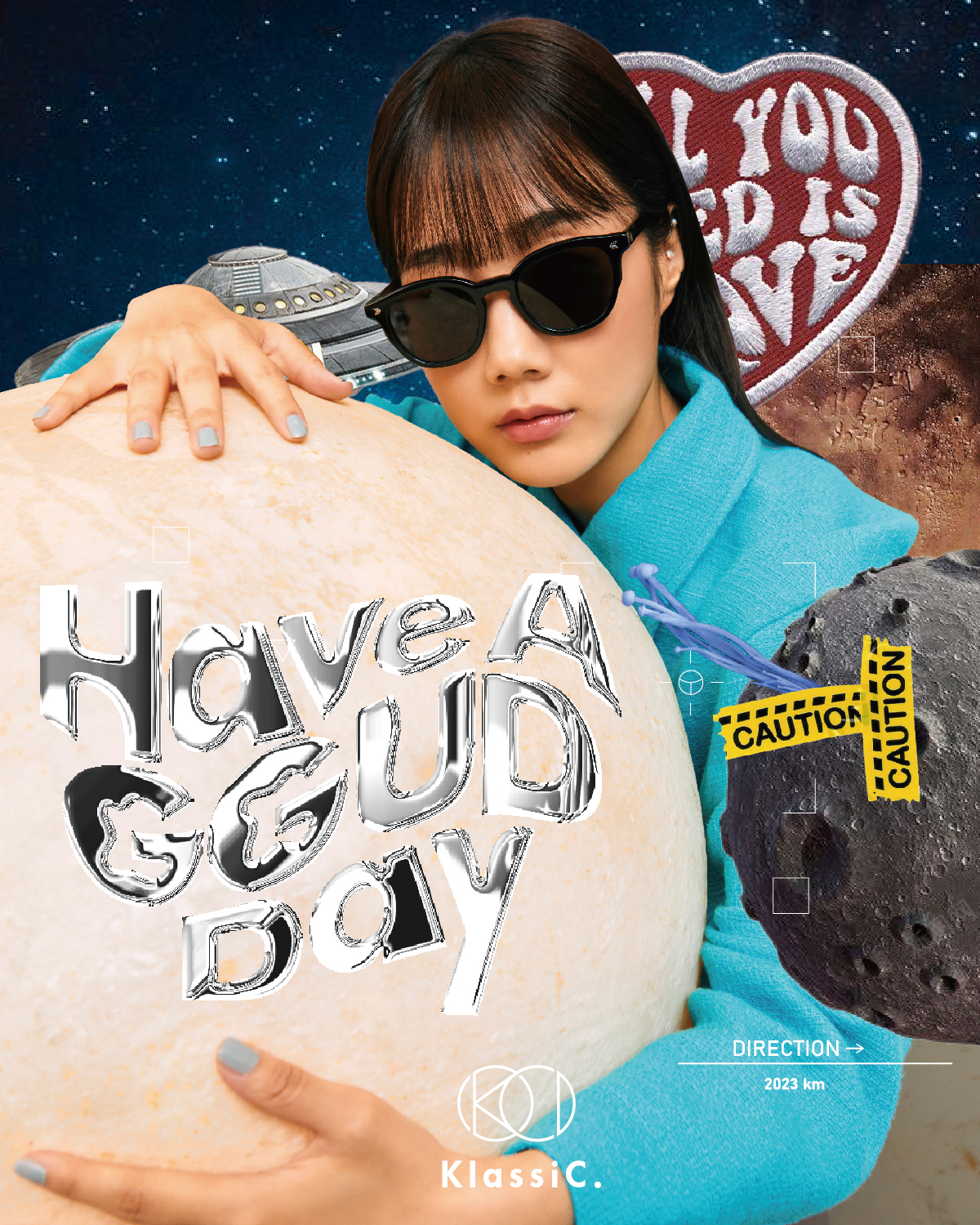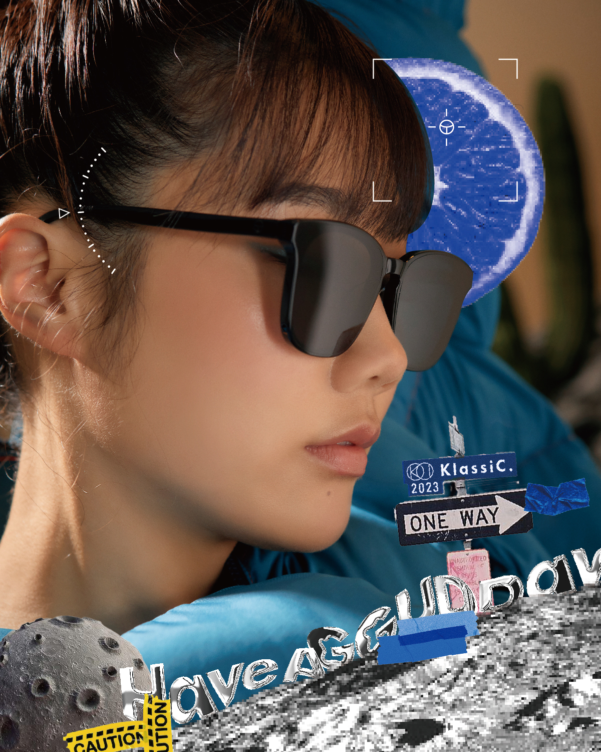 「HAVE A GGUD DAY」源自 Have a good day, 傳達本次企劃想分享給大家積極的祝福與好心情;每當戴上眼鏡、墨鏡後,準備展開一天的行程,滿載著快樂與趣味,此歡樂的氛圍透過美式復古的拼貼手法來呈現,將形象照片與宇宙、公路旅行等視覺元素結合,彷若拋下憂心擾人的一切,讓我們一起對未來帶上美好的期望。