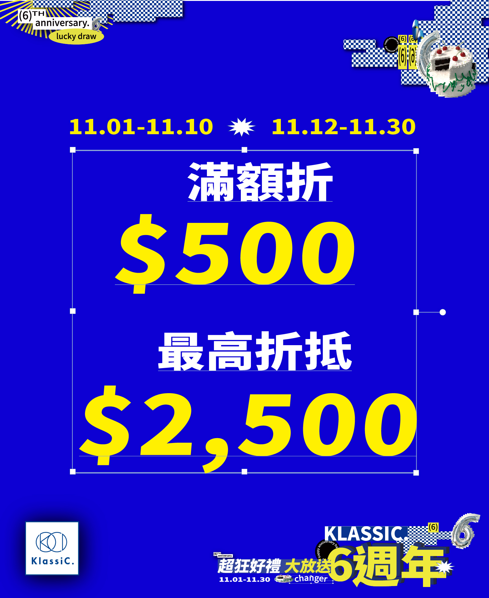 4. 個人資料利用之期間: 自 台端參加【2023 年 KlassiC. 6 週年抽獎活動】活動之日起至次年 01/31 止。