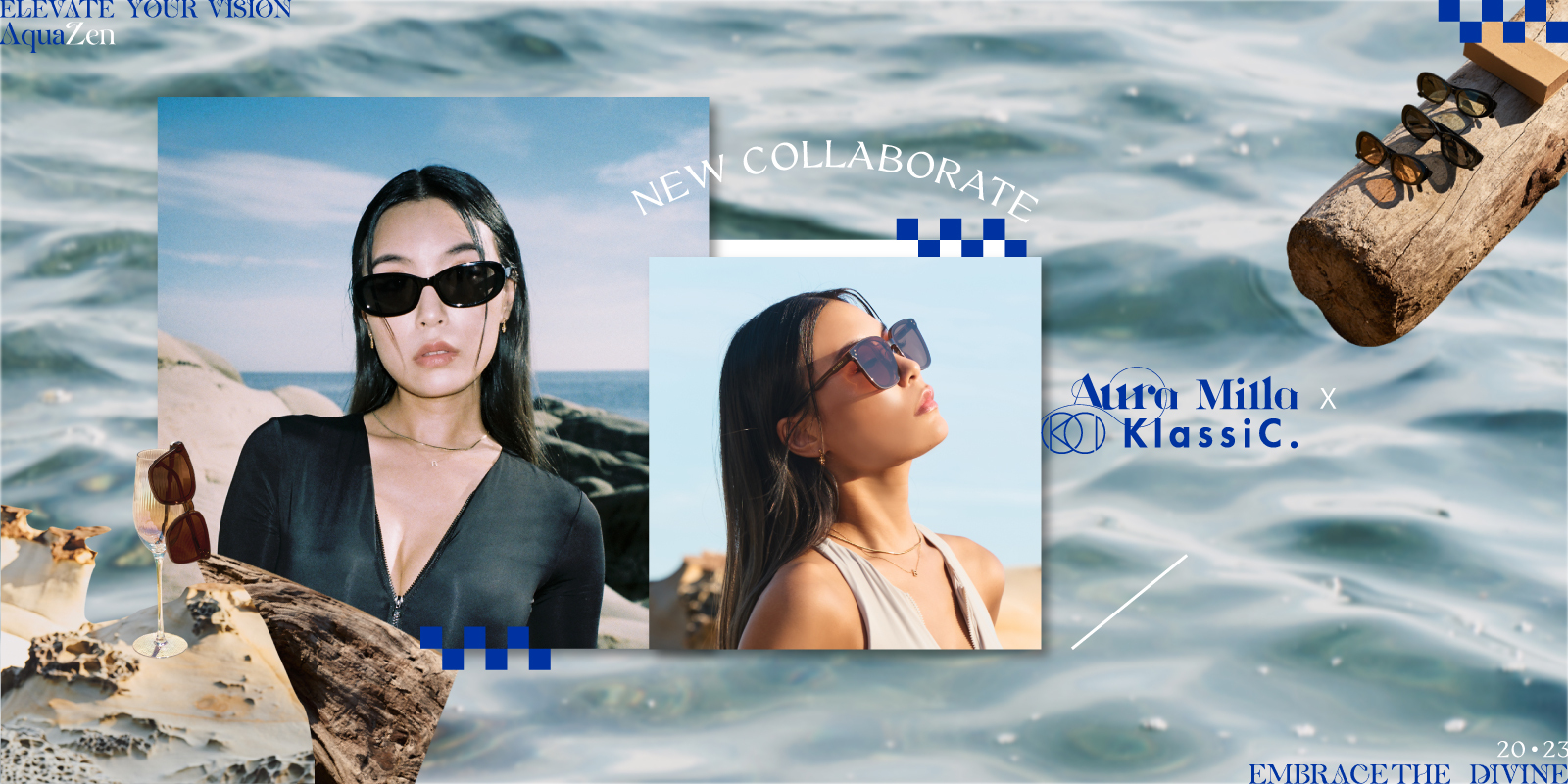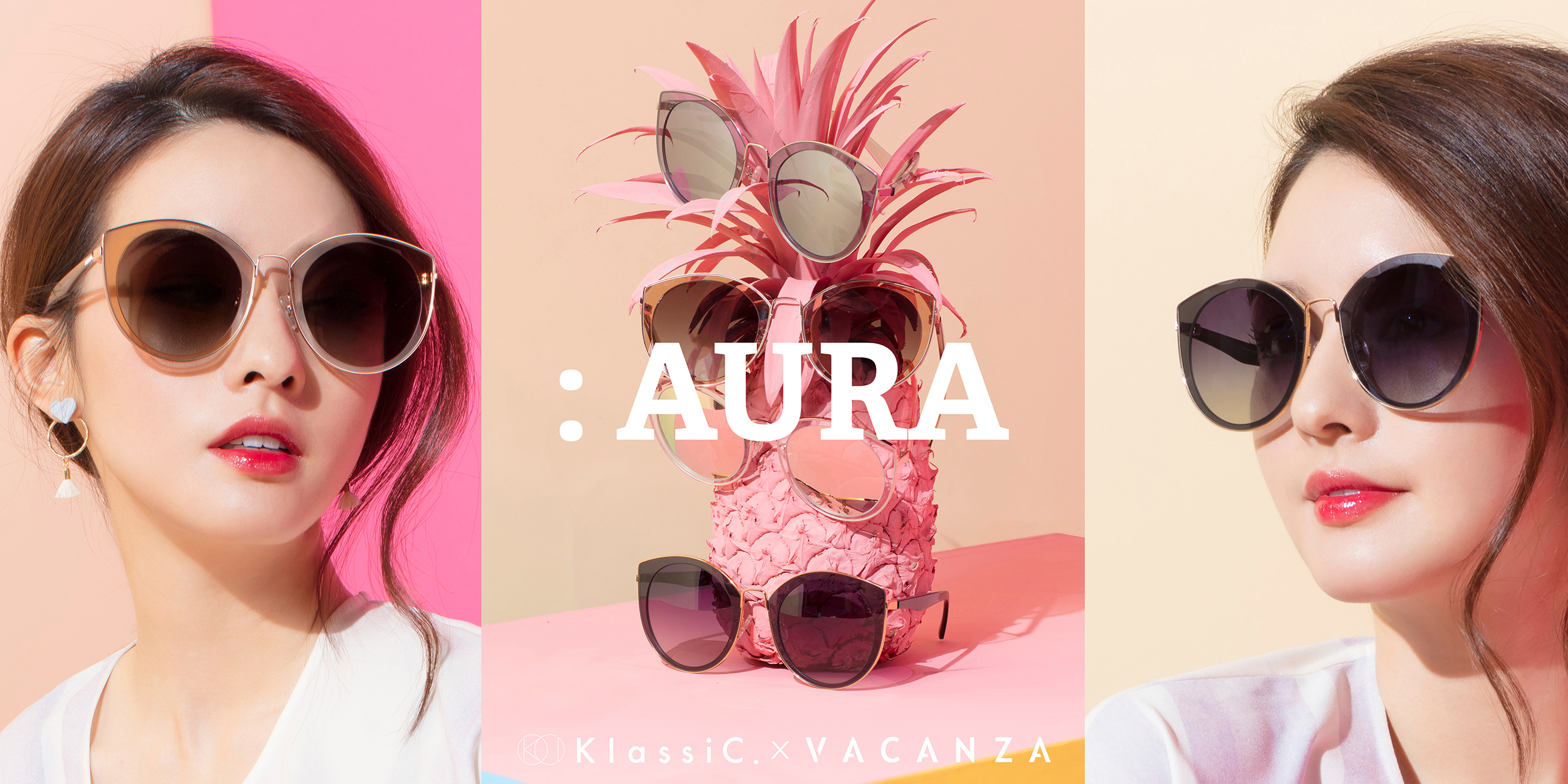 今年夏天,打造時尚流行鏡框的 KlassiC. 與嬗遞女性溫柔的 Vacanza Accessory 假期飾品 一同打造心中的「夏美」,設計三款以神話女神為名的聯名墨鏡:Aura、Hemera 和 Nyx,輔以多樣的配色與框型,滿足不同臉型的需求。