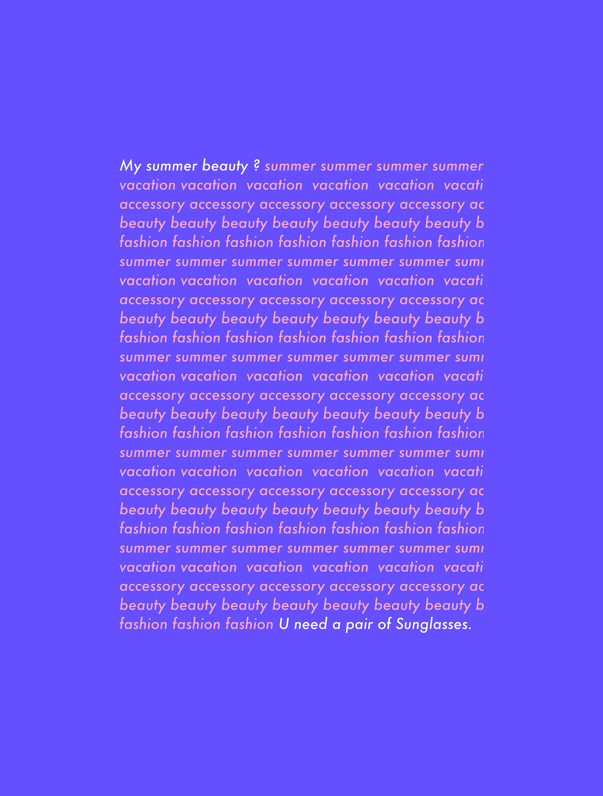 「夏美」為夏日的美麗之意,在瀰漫著炙熱暑氣、穿搭單薄的夏季裡面,女性的美麗與自信,其實能透過一只合適的墨鏡輕鬆帶出,戴著它,抵抗著烈陽,建立著美,請與我們一起說出「配件才是夏天的主角」!