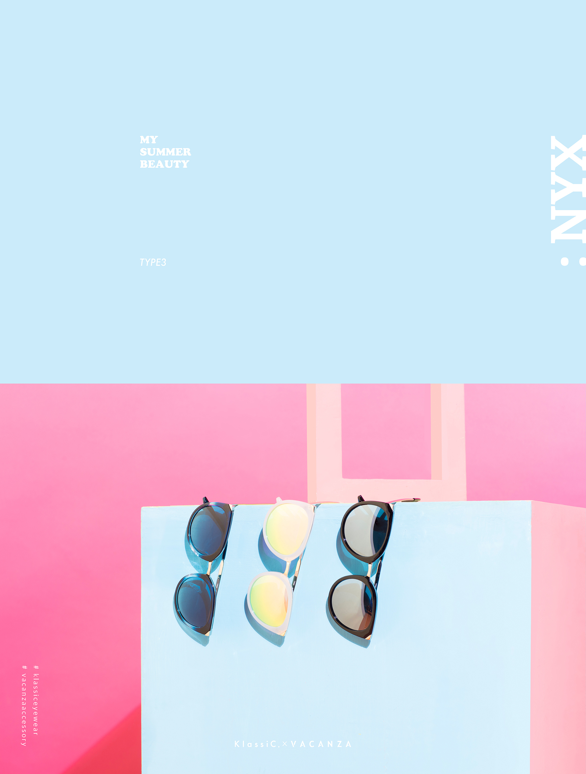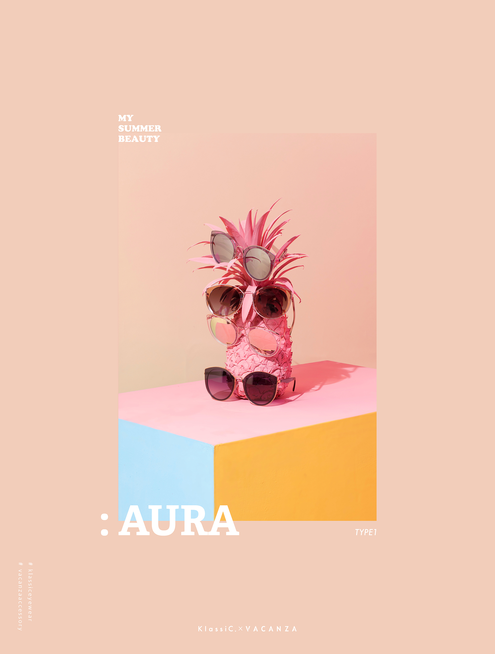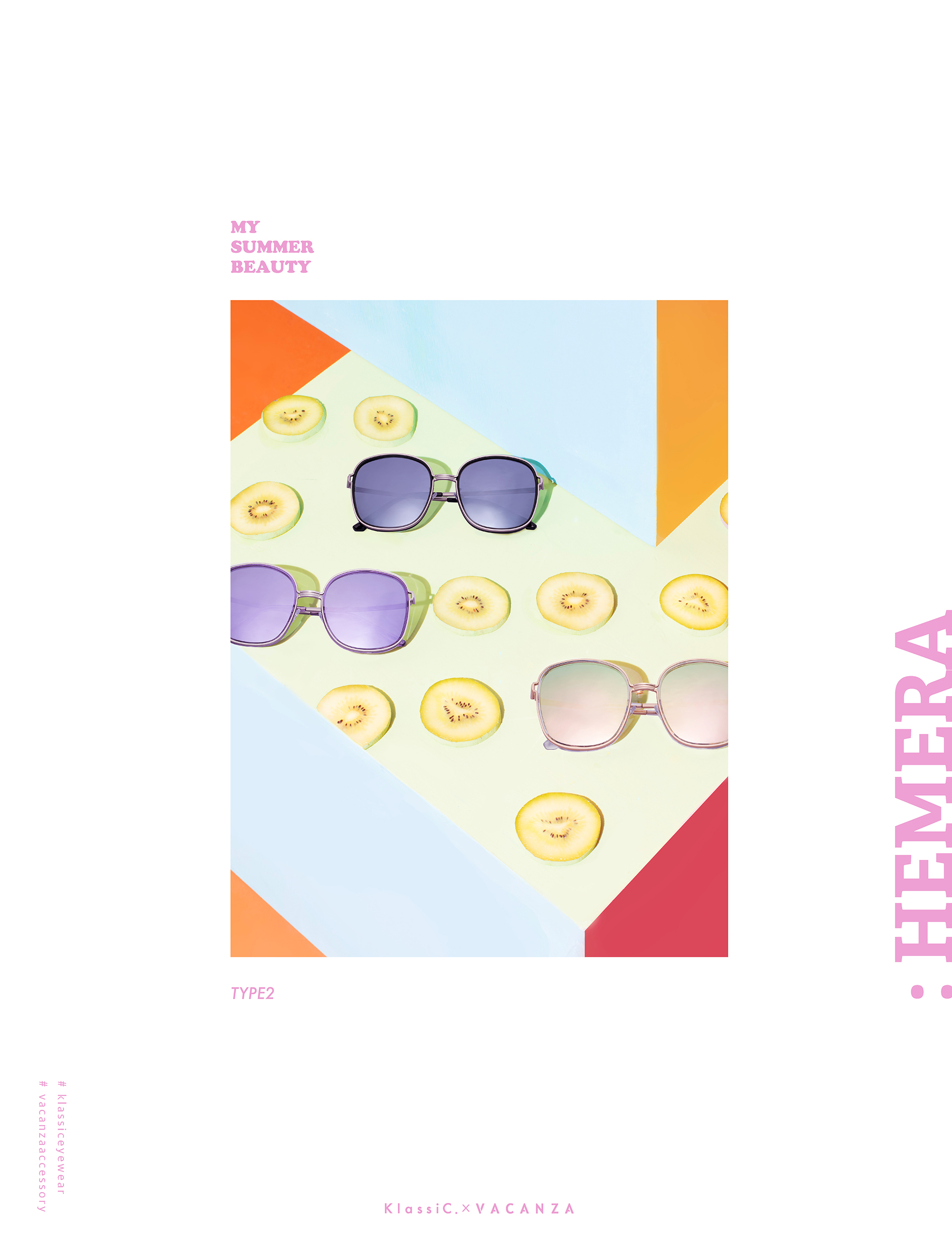 今年夏天,打造時尚流行鏡框的 KlassiC. 與嬗遞女性溫柔的 Vacanza Accessory 假期飾品 一同打造心中的「夏美」,設計三款以神話女神為名的聯名墨鏡:Aura、Hemera 和 Nyx,輔以多樣的配色與框型,滿足不同臉型的需求。