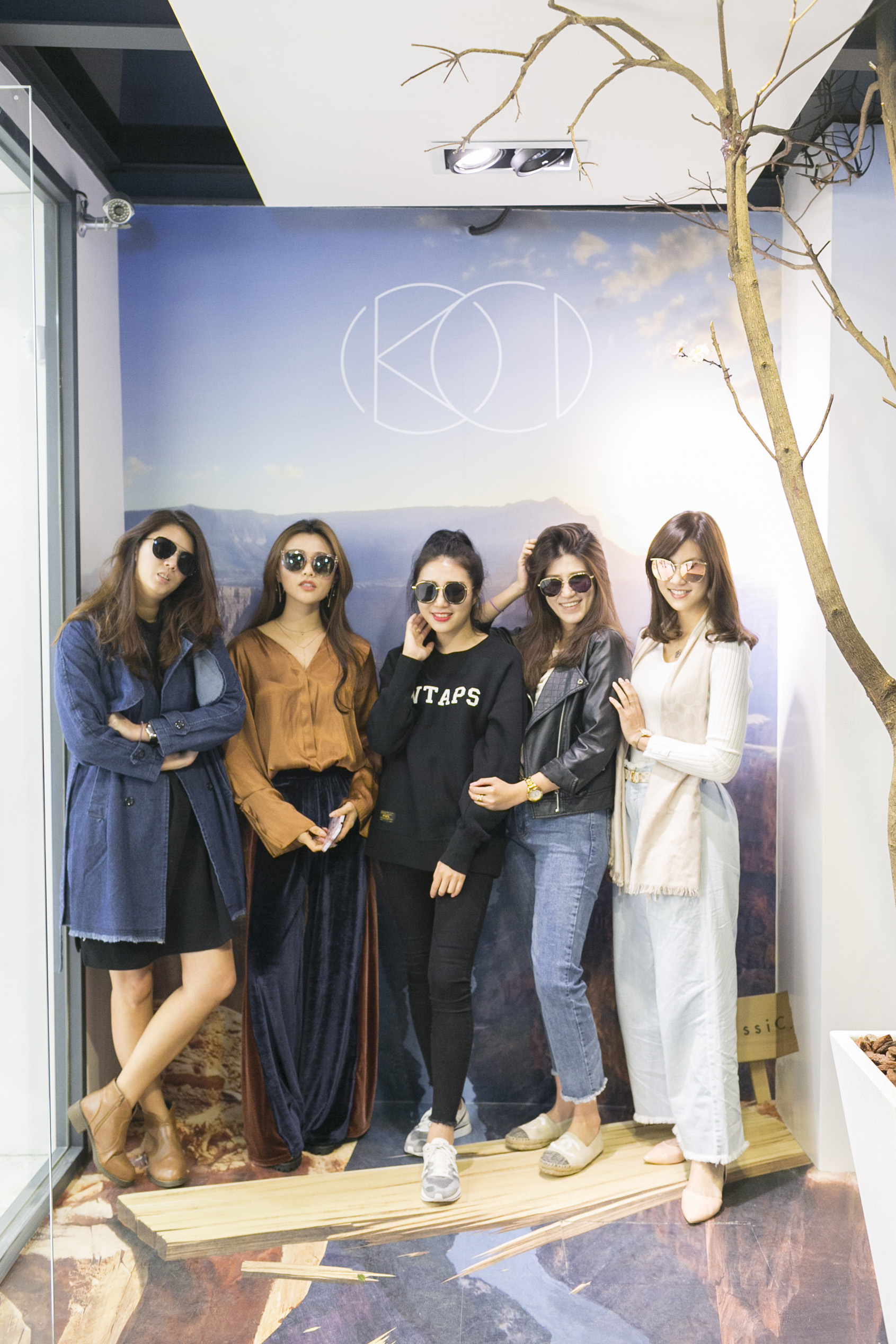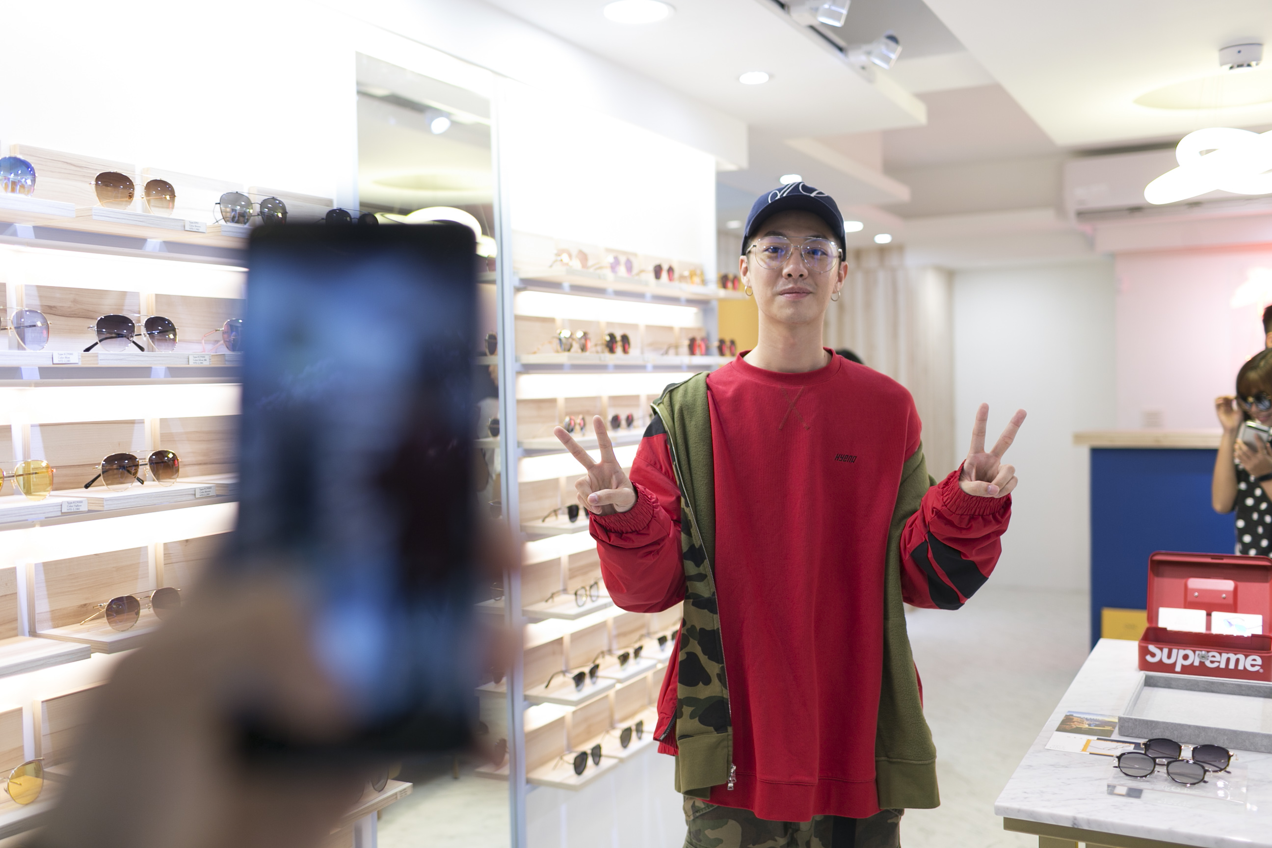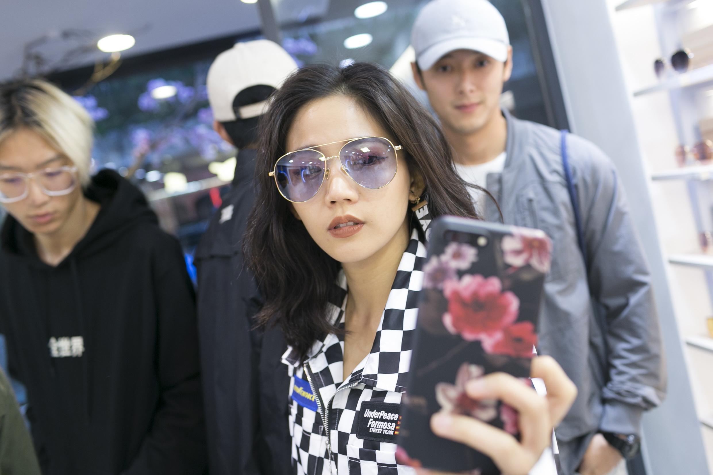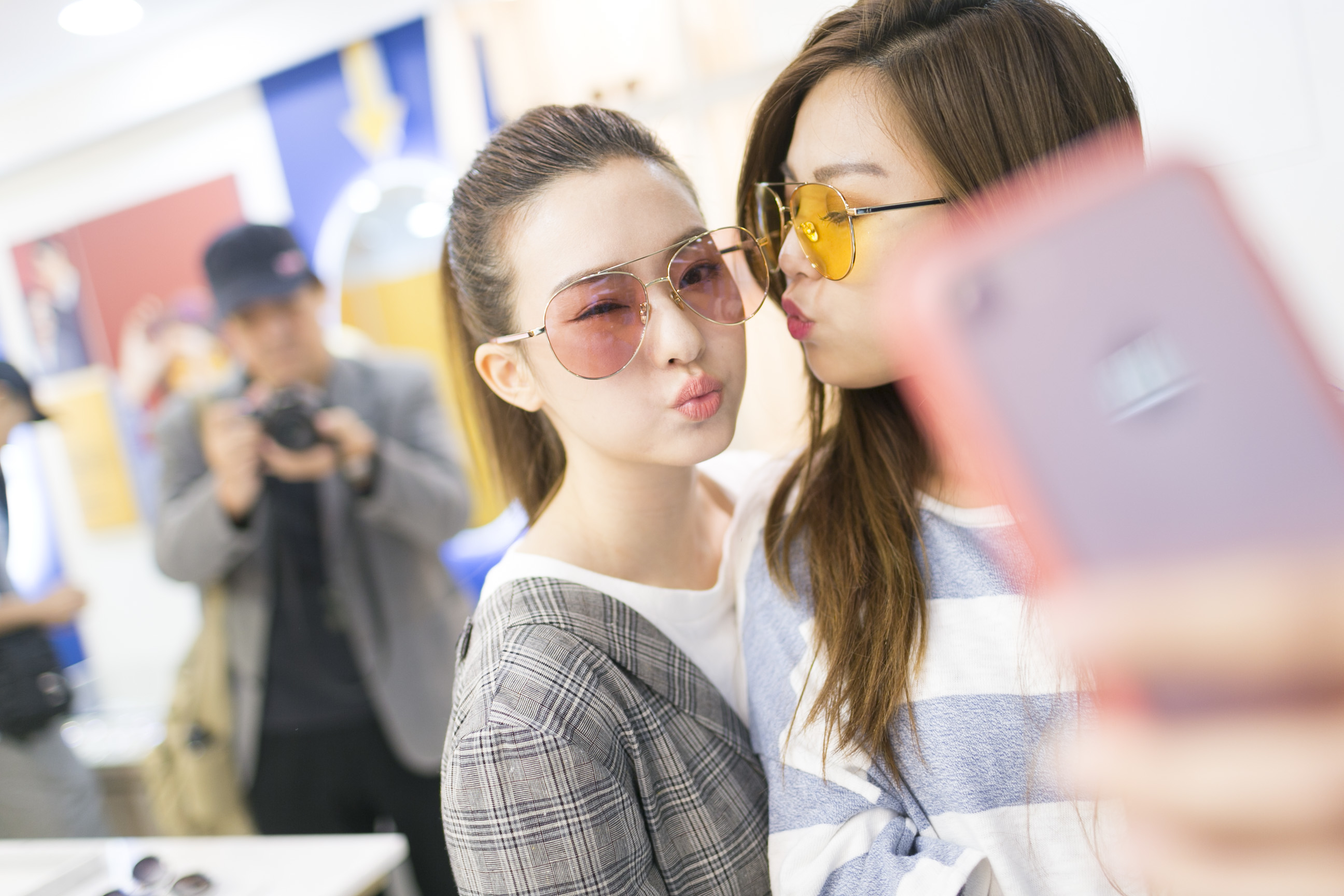 當天最多好友們試戴的款式就是淺色鏡片的墨鏡,尤其改良經典飛行員墨鏡的KC9000,更是大熱門!