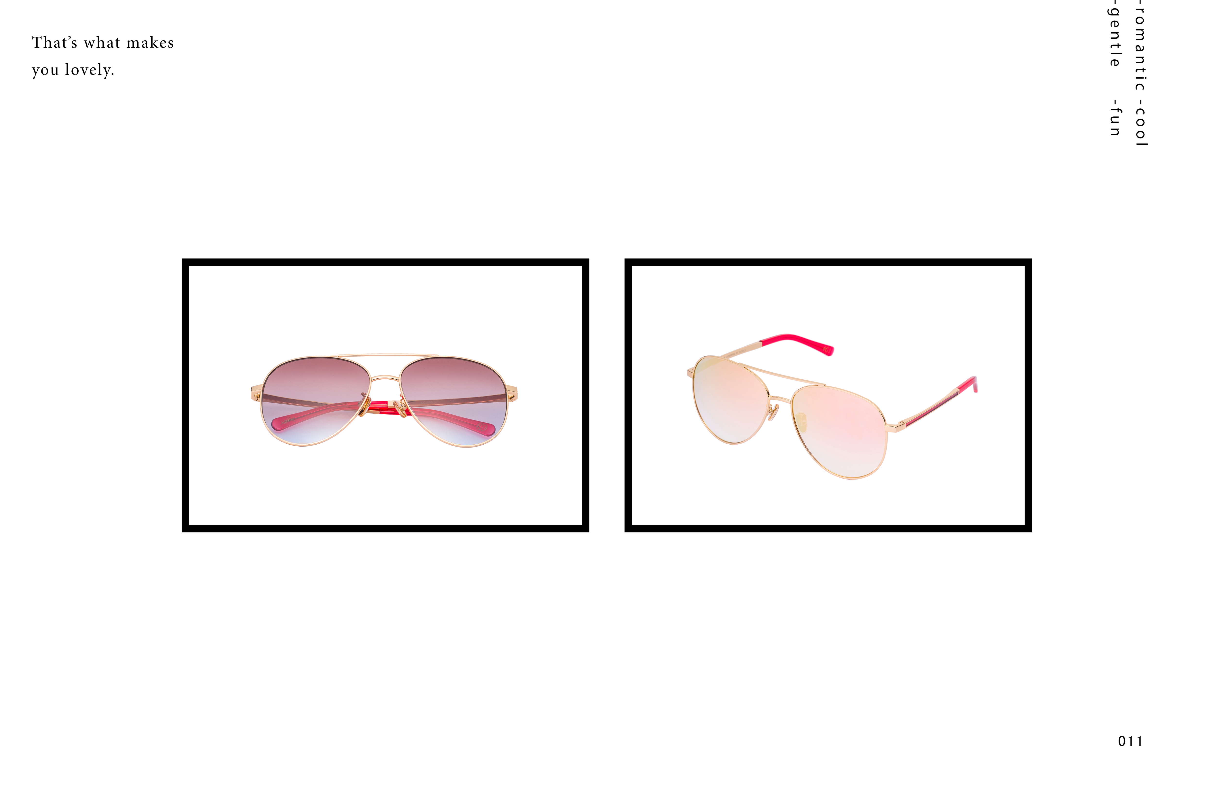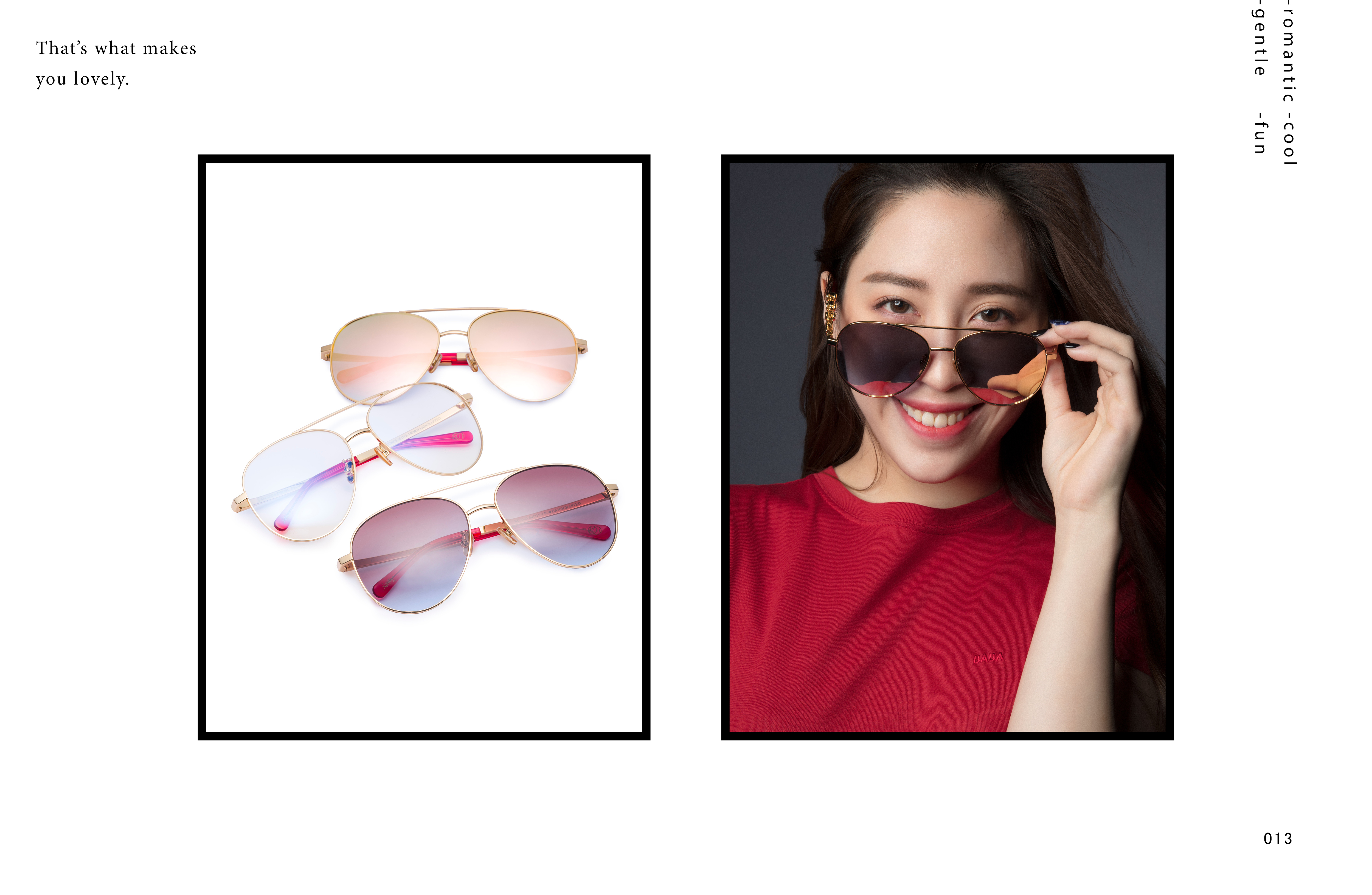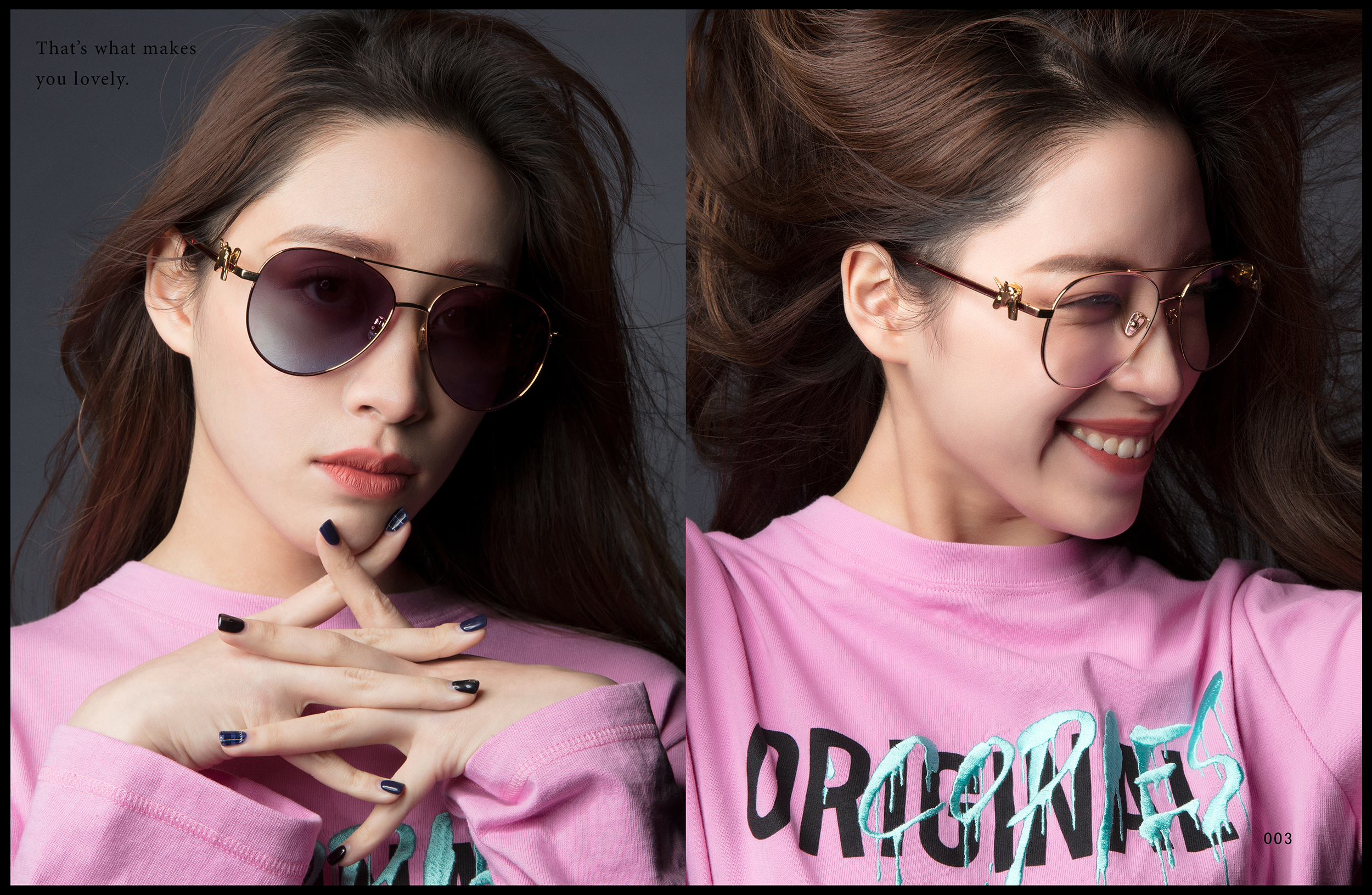 框型設計上皆以KlassiC.品牌經典框型KC9000為基底,著重於改良經典框型與配戴舒適度,另一方面也嘗試為鏡框帶來各種不同的可能性,除了眼鏡鍊之外,還能有甚麼呢?本次亮相的鏡框飾品夾〔Frame Clips〕,為團隊與妮妮共同發想打造,針對「That’s what makes you lovely」定義出四種惹人喜愛的個性,揉合著妮妮的喜好,設計獨角獸(浪漫)、愛心(溫柔)、手槍(酷)、文件夾(趣味)四款圖案。