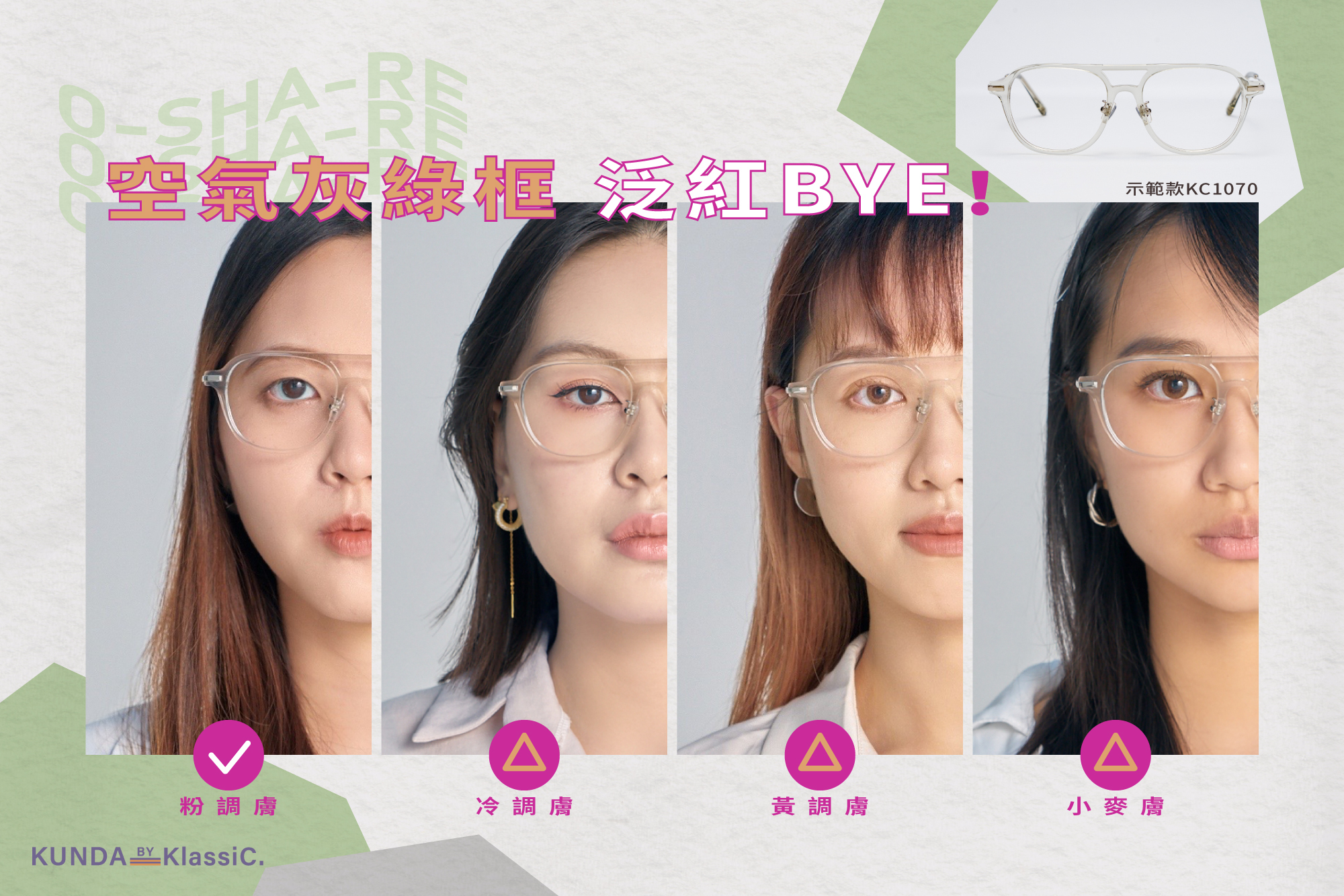 選擇淺綠鏡框 #矯正泛紅的肌膚